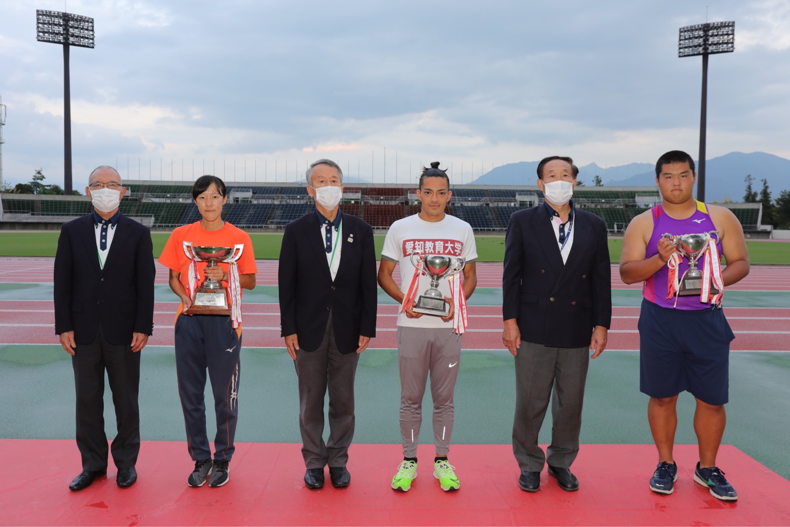 深澤選手(山梨学院大)が女子やり投で県新、大会新となり会長杯を授与されました。